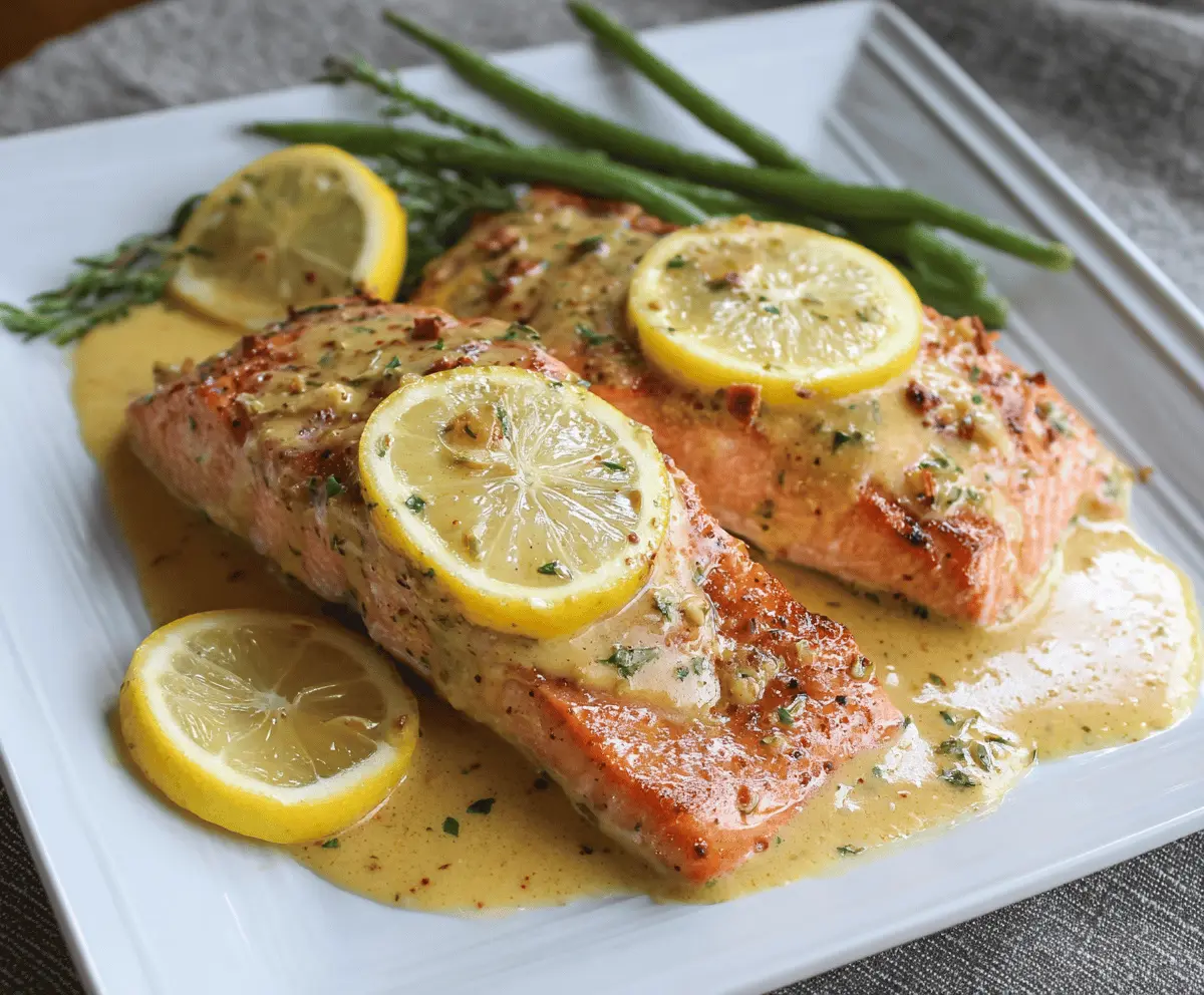 Serve your Zesty Lemon Dijon Salmon immediately. Garnish with fresh lemon slices and a sprinkle of chopped parsley or thyme. This dish pairs perfectly with rice, roasted vegetables, or a crisp green salad.